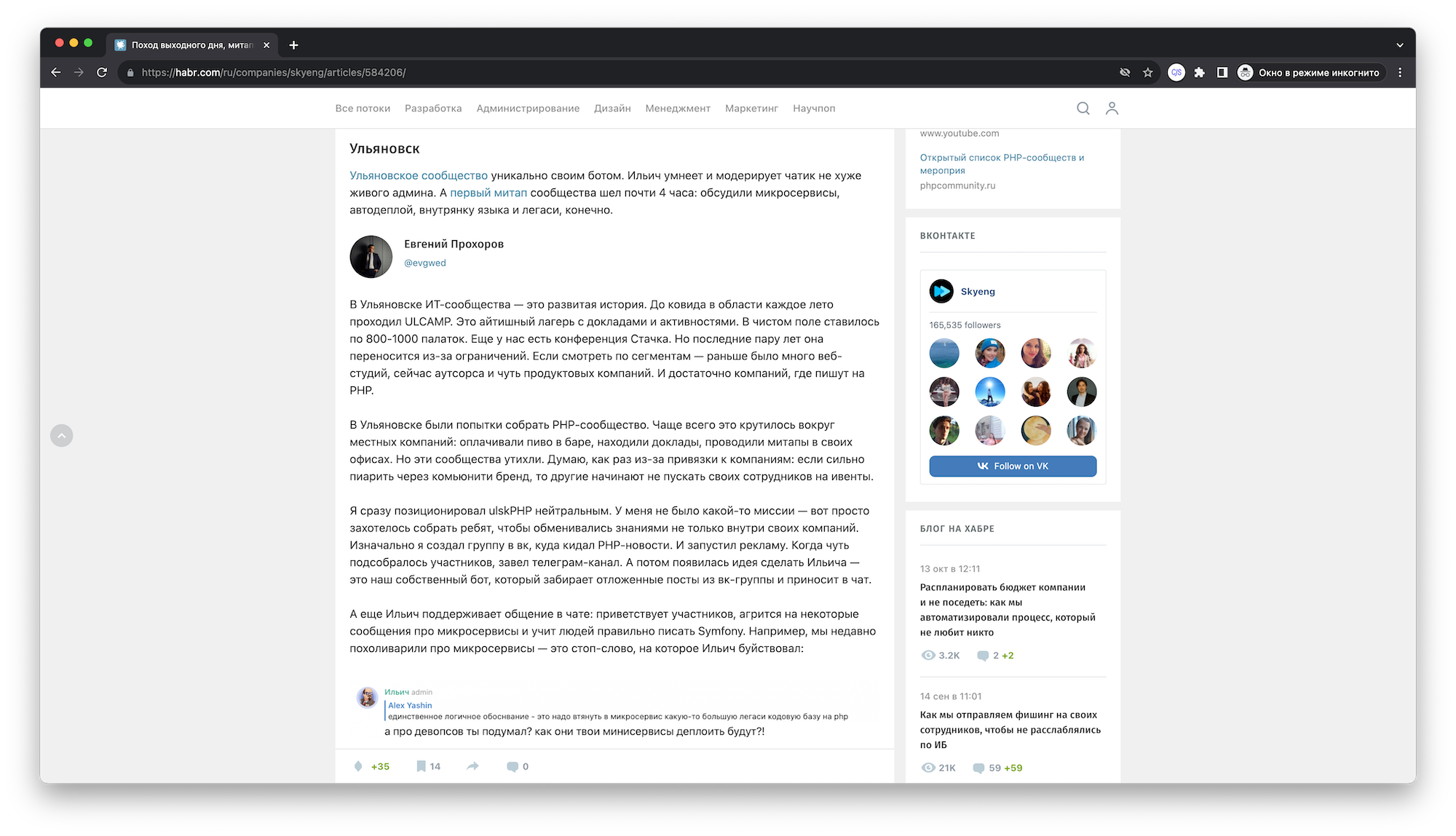 Рассказал о сообществе ulskPHP на Хабре